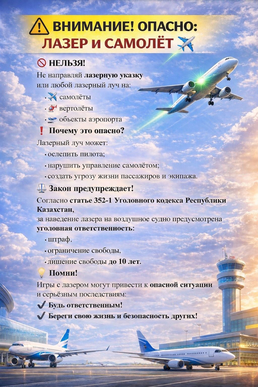 10 март 2026 0 1 2 3 4 5 Лазерлік құрылғыларды заңсыз пайдаланудың алдын алу бойынша жадынама. Памятка для обучающихся по предупреждению незаконного использования лазерных устройств Памятки